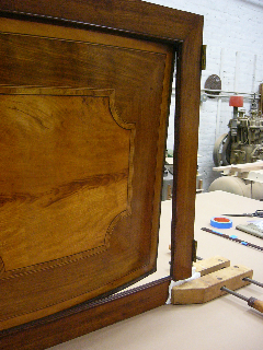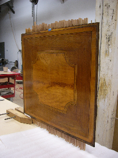 properly with the help of finish guru and friend, Jim Goulding, from the Restoration Workshop. The panels were returned to repaired frames and remounted into the