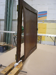 The doors were removed from the cabinet and taken to the shop, under the hot