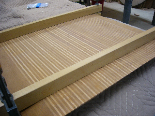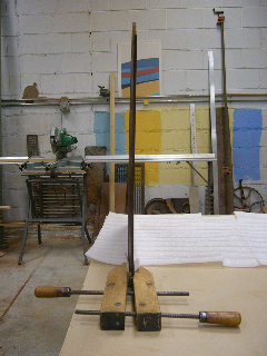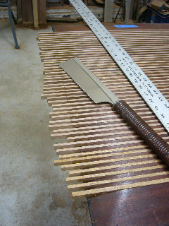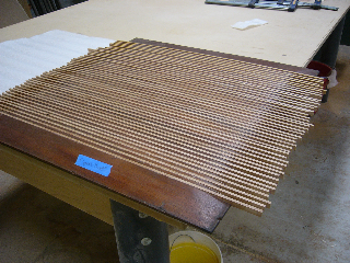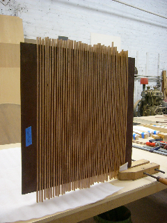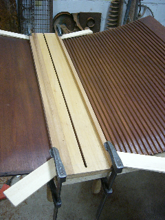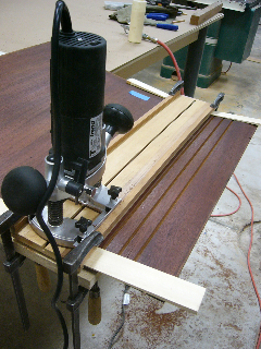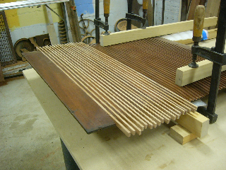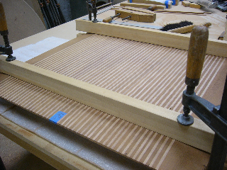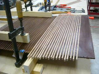 After all the grooves were routed, the wedged strips, hide glue applied, were