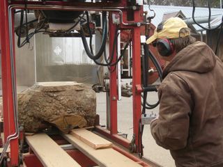 the F-150 to Somerset, Wisconsin to meet friend Russ Rastetter at TW Lumber, and his idling milling machine. Here’s a shot of Russ getting